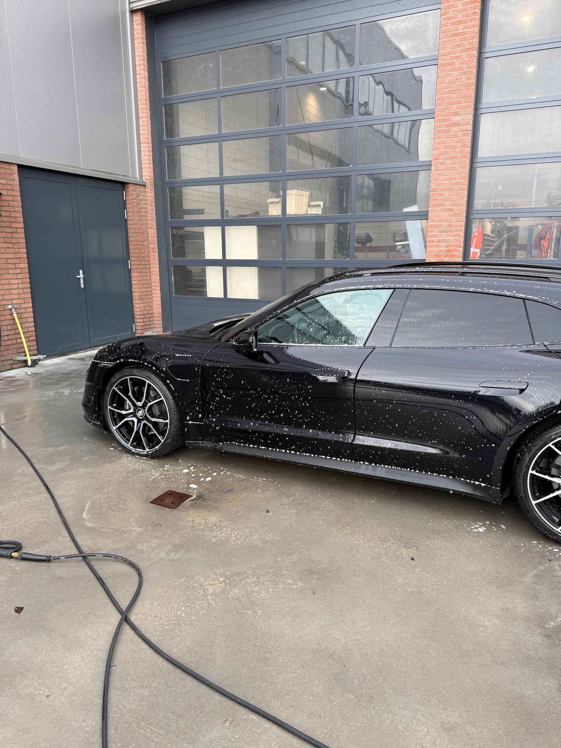 We hebben de Porsche Taycan grondig behandeld met onze uitgebreide detailingdiensten. Het proces begon met een zorgvuldig wassen van de auto om vuil en onzuiverheden te verwijderen. Dit was gevolgd door een 3-staps polijsten, waarbij we meerdere polijstmiddelen hebben gebruikt om lakschades en swirls te verwijderen, wat resulteert in een perfecte glans.